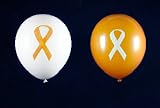 A must have for any fundraising event! These 11 inch white and orange balloons have a ribbon on them. Just fill with helium or air and you are ready to go. Sold 2 dozen per package (12 white balloons with orange ribbons and 12 orange balloons with white ribbons).
